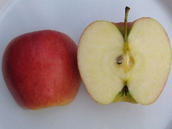 Pommier à croissance lente avec des fruits rouge sur fond vert, chaire blanchâtre, arromatique croustillante. Plantation plein soleil dans un solé bien drainé. Protéger des rongeurs à l'automne. Fructification de 3 à 5 ans.
