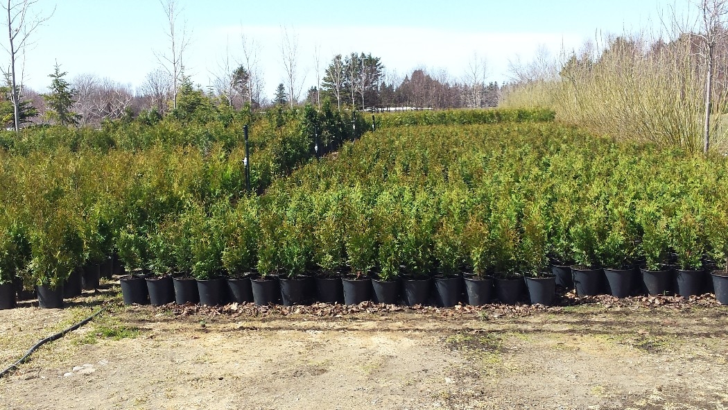 Cèdres à haie Tuya occidentalis (60 cm) Feuillage dense et persistant. Tailler légèrement en juin et répéter en août. Sol riche et humide. Sensible au sel des routes. Haie moyenne ou haute selon la taille.