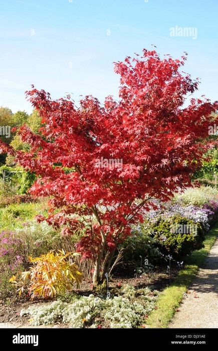 Port arrondi, feuillage pourpre, rouge éclatant l'automne Abriter du vent. Z: 5 H: 6 m L: 4 m